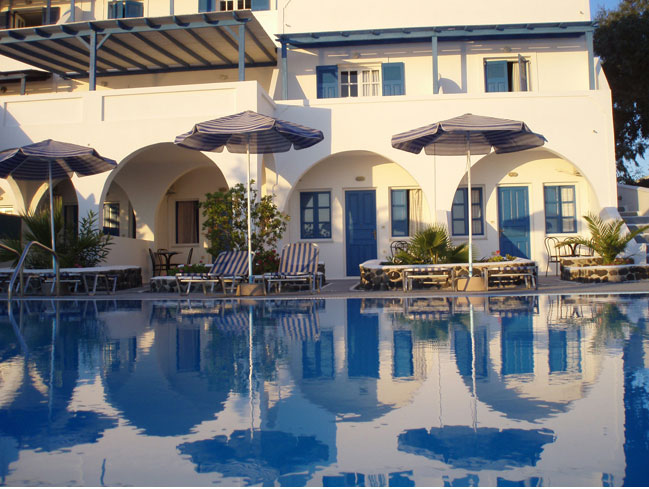 Olympic Villas is situated atop a cliff overlooking the village of Oia and the breathtaking Caldera. 12km from Fira (capital of Santorini) and 800 metres from the Oia's village centre. The nearest beach is 2km away & can be accessed by car or bus (Baxedes). ... Access Doc